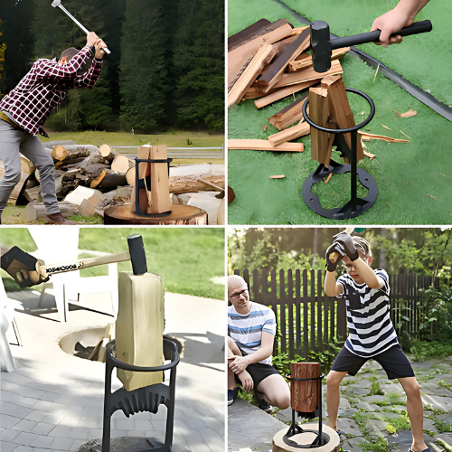 - 🛡️ Plus sûr qu’une hache – rails/anneau qui maintiennent la bûche, pas de lame exposée.