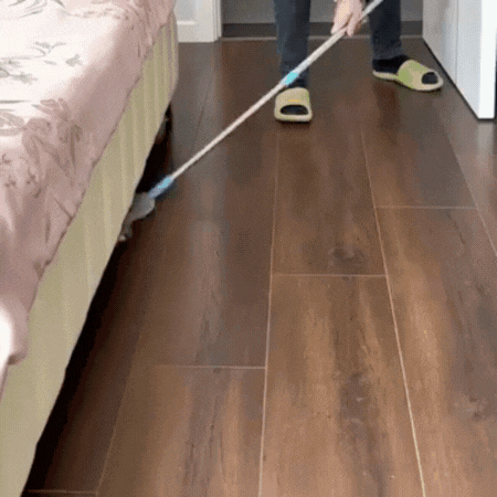 La tête articulée épouse les angles, se plie pour passer derrière un pied de meuble, puis se redresse. Le manche télescopique, léger et confortable, vous évite de vous pencher ou de grimper.