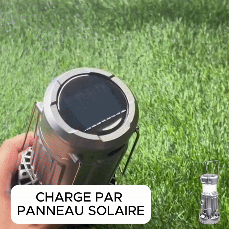 Le panneau solaire intégré permet de recharger la lanterne en pleine nature, offrant une solution écologique et durable. Elle peut également être rechargée via USB ou fonctionner avec des piles pour plus de flexibilité.