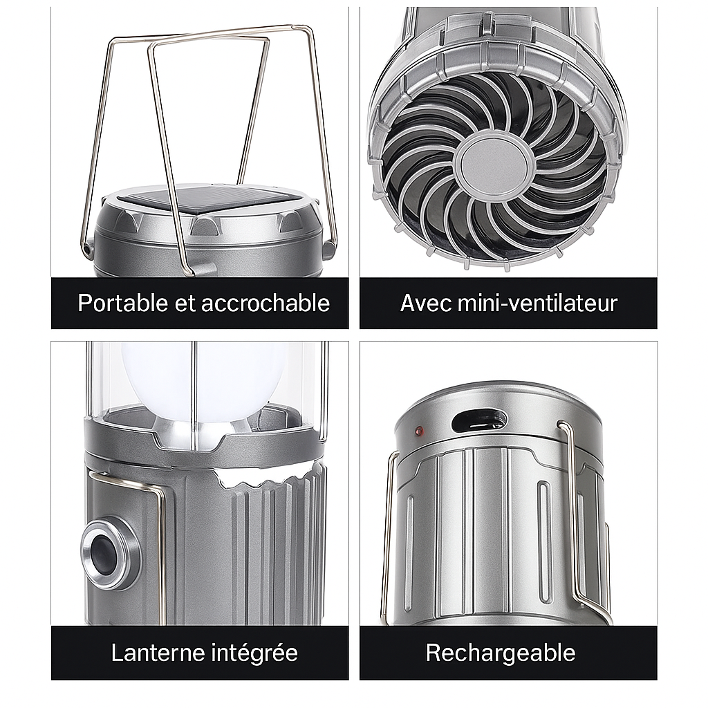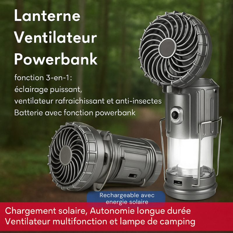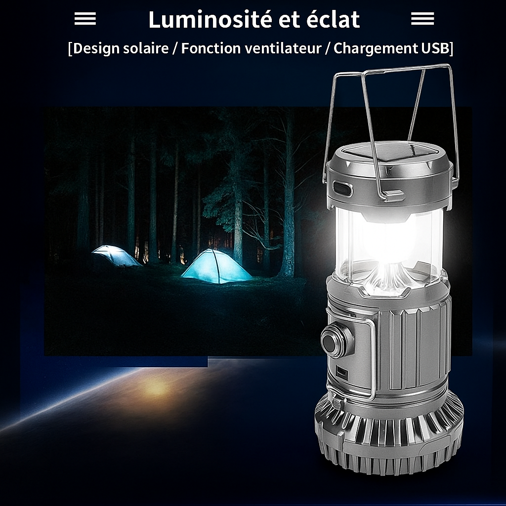 🔦 Lanterne de camping LED 3-en-1 avec ventilateur