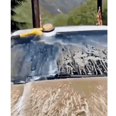 La tête rotative, entraînée uniquement par la pression de l’eau, tourne en continu tout en projetant de la mousse. Vous éliminez poussière, boue et insectes en un seul passage, sans jamais forcer.