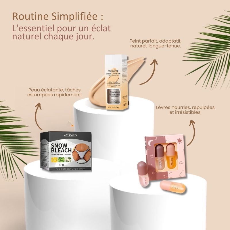 Coffret Beauté Routine: Teint Parfait, Lèvres Sublimes et Peau Éclatante
