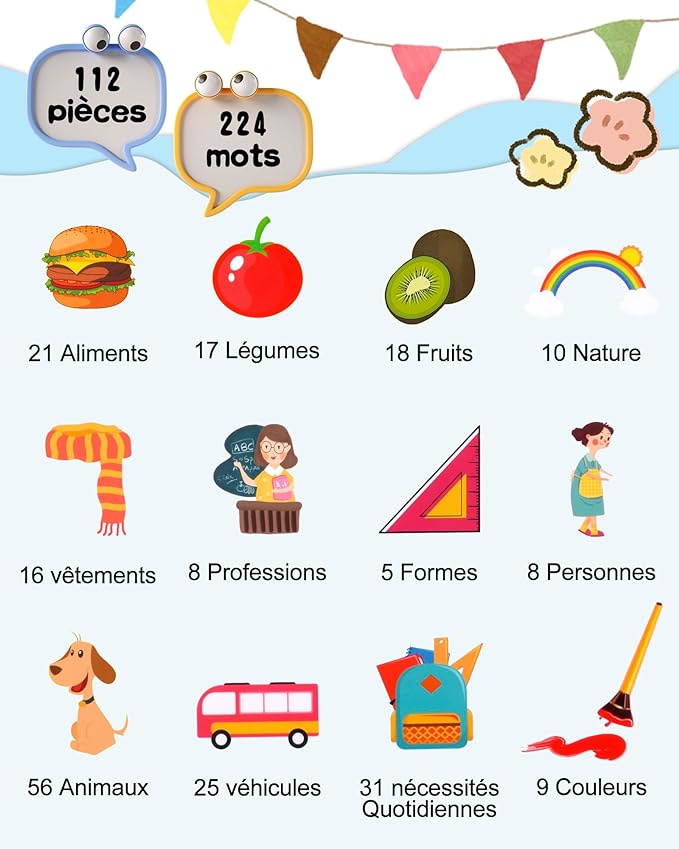 Les FlashCartes Éducatives offrent une expérience d'apprentissage ludique et interactive, conçue pour stimuler le développement linguistique et cognitif de l'enfant.