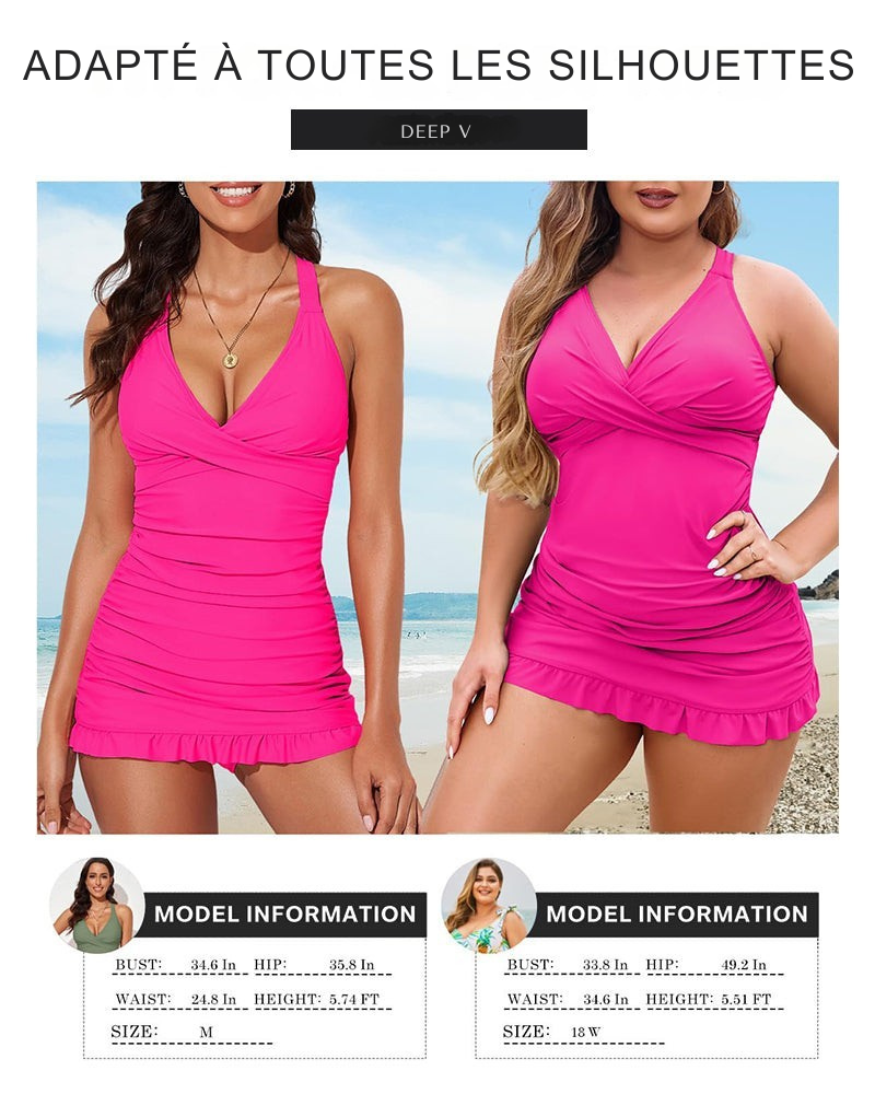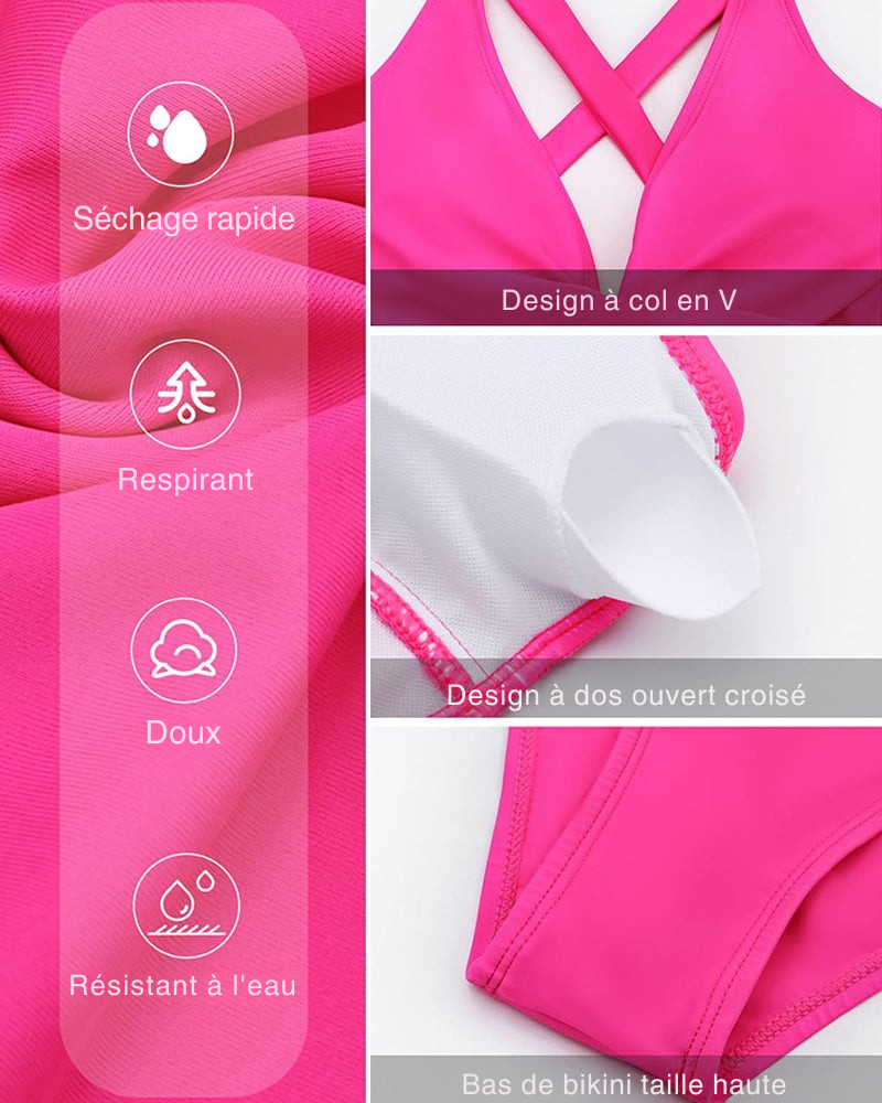 🌟 Maillot de bain une pièce Deep V à dos croisé et fronces