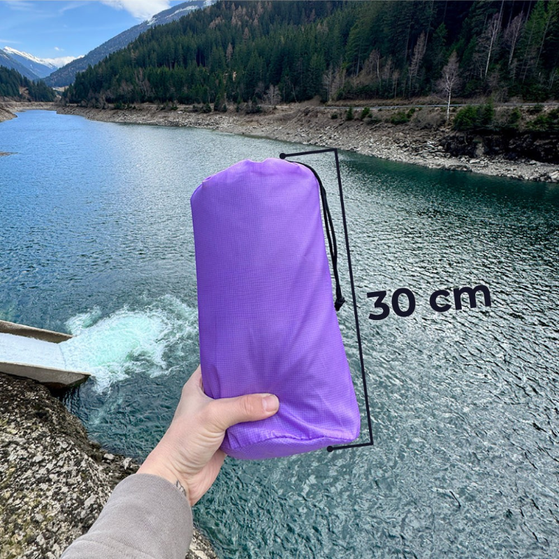 Un matelas gonflable ultra-compact, aussi petit qu’une bouteille d’eau une fois plié. Facile à transporter, il sera votre compagnon idéal pour toutes vos aventures et escapades.