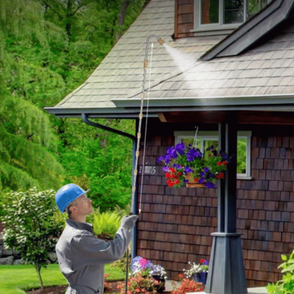 Les rallonges, qui atteignent jusqu’à 3 mètres, se combinent pour nettoyer confortablement depuis le sol la plupart des gouttières résidentielles.