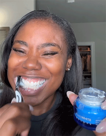 Trempez une brosse à dents humide dans la poudre et brossez-vous les dents comme à l'habitude. Rincez abondamment après.